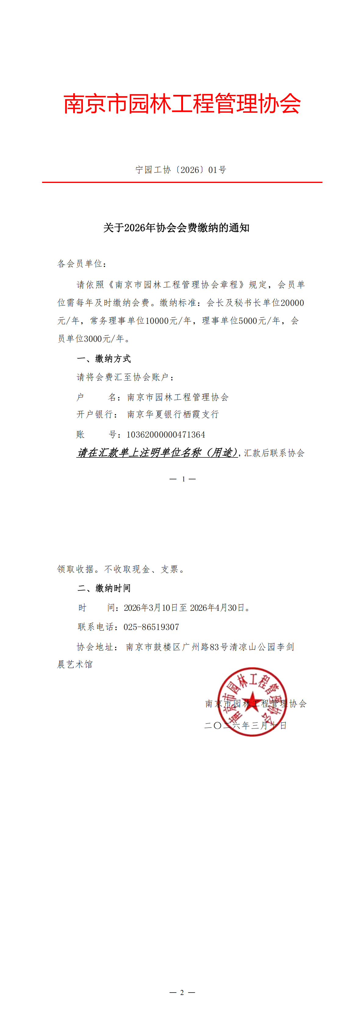 关于2026年协会会费缴纳的通知